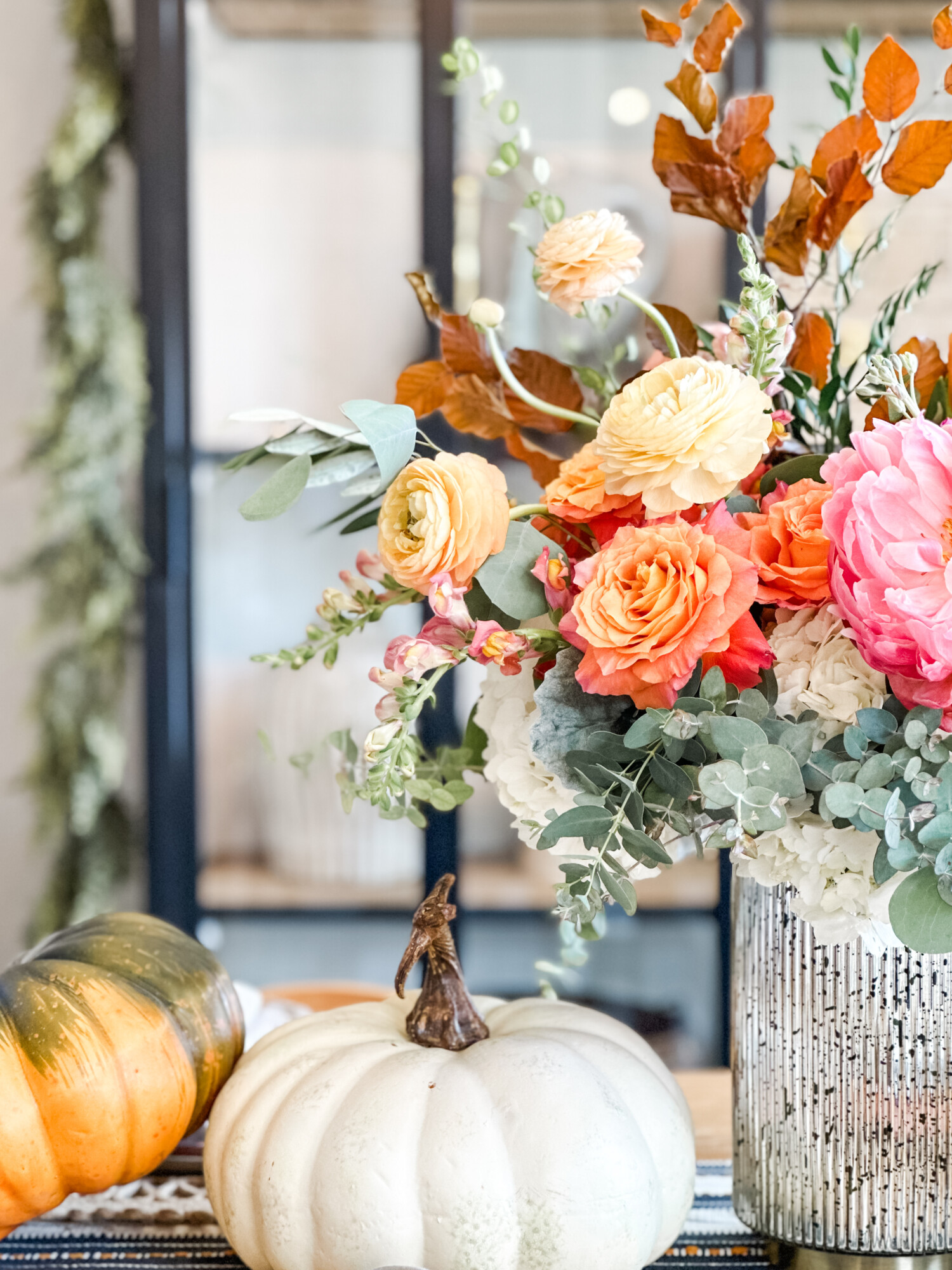 Design an eye catching centerpiece using a combination of fresh florals, dried berries, and small pumpkins. Be creative in how you arranged everything. You can use a rustic wooden tray or a vintage vase for an added touch of nostalgic charm.