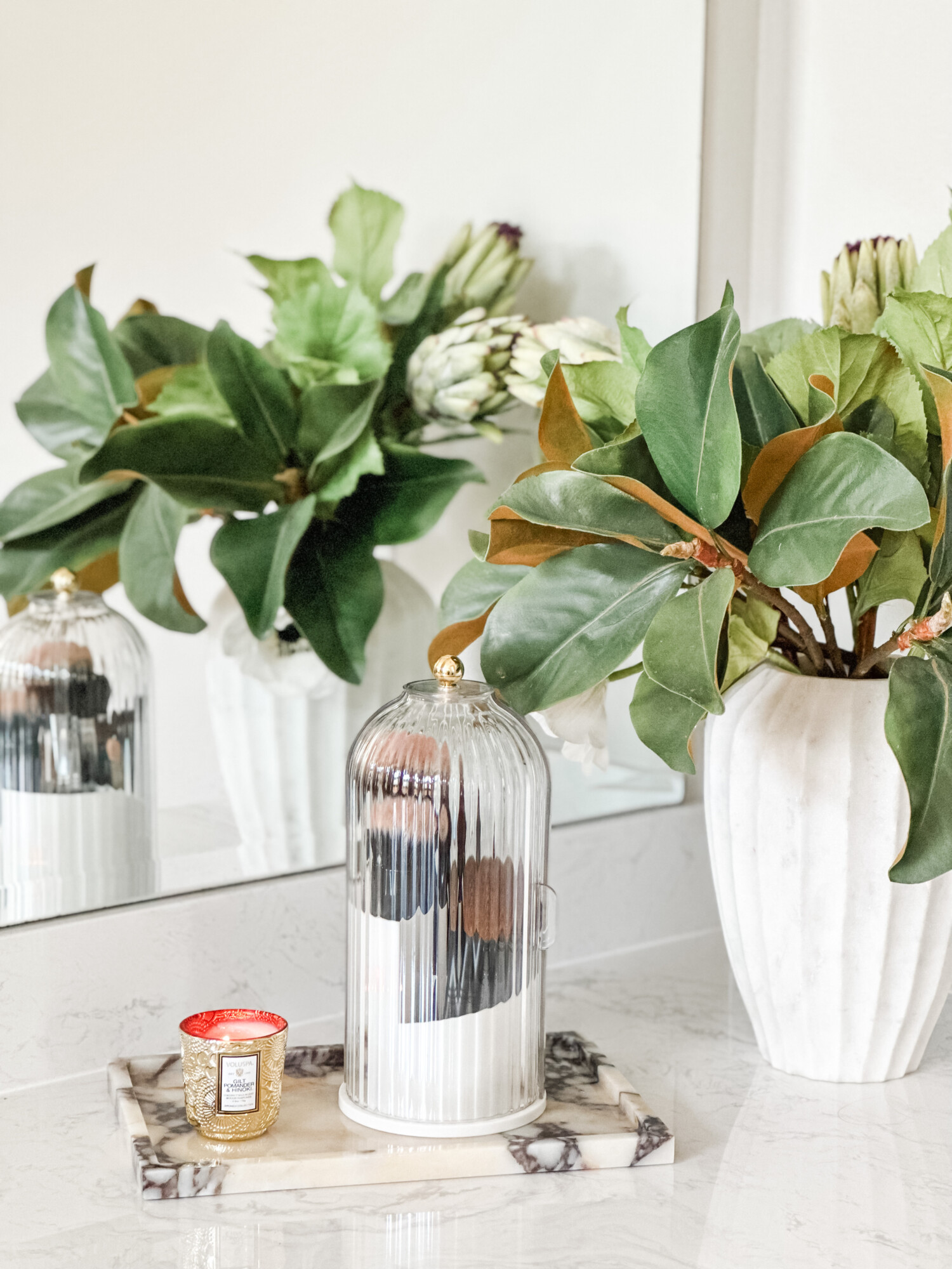 The cutest bathroom accessories that combine aesthetics and functionality. Say goodbye to clutter and hello to elegance! You can’t get enough of the fluted makeup brush organizer. And how about this acrylic tissue box with the added detail of the gold little feet? You love it and for good reason, these add a pop of elegance to your bathroom.