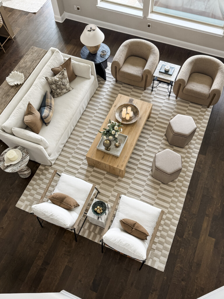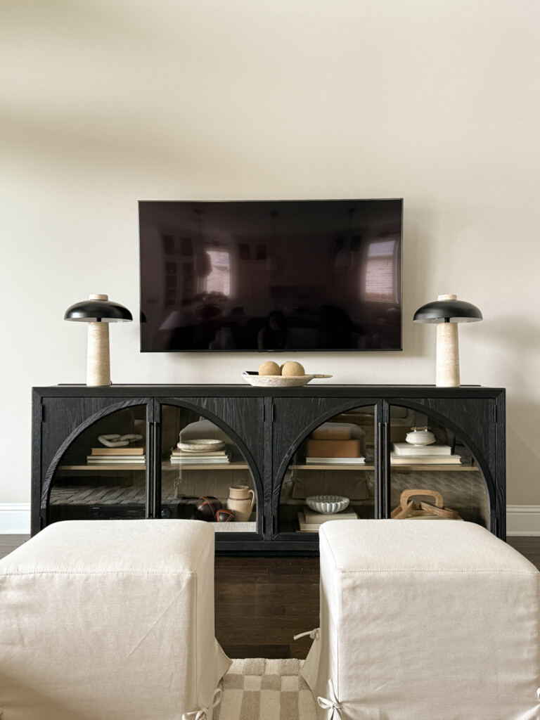 The living room is a family space where I prioritize comfort and softness. that feel lived in but still elevated. I’m keeping foundational furniture that anchors the space and can easily be restyled over time.